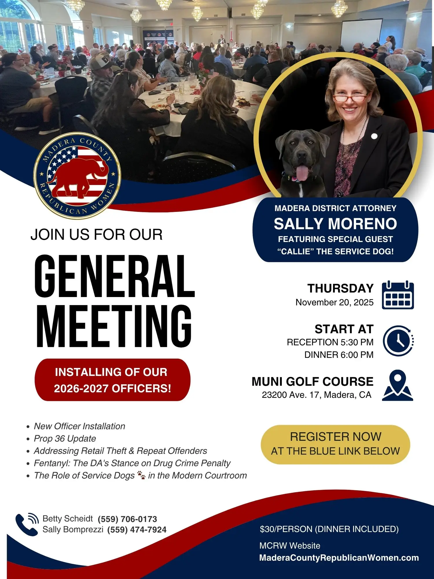 You'll amplify your voice on issues that matter, network with passionate conservatives, and directly help us champion our shared values right here in Madera County.
